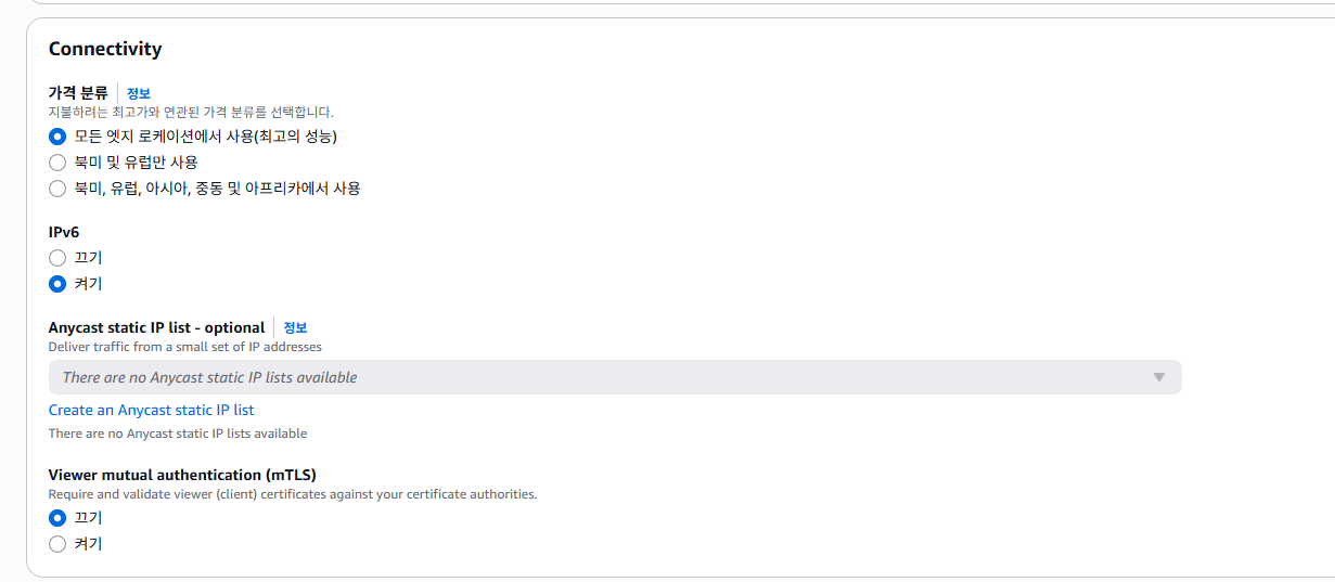 - Origin Domian - 기존에 생성해둔 S3가 자동으로 찾아서 선택지에 생성됨