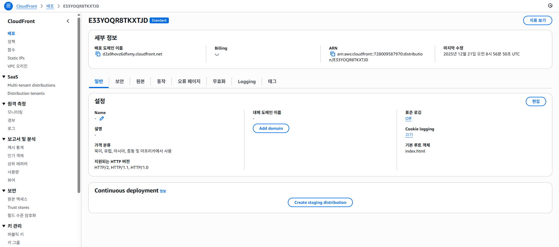 - CloudFront는 AWS에서 제공하는 CDN(콘텐츠 전송 네트워크) 서비스